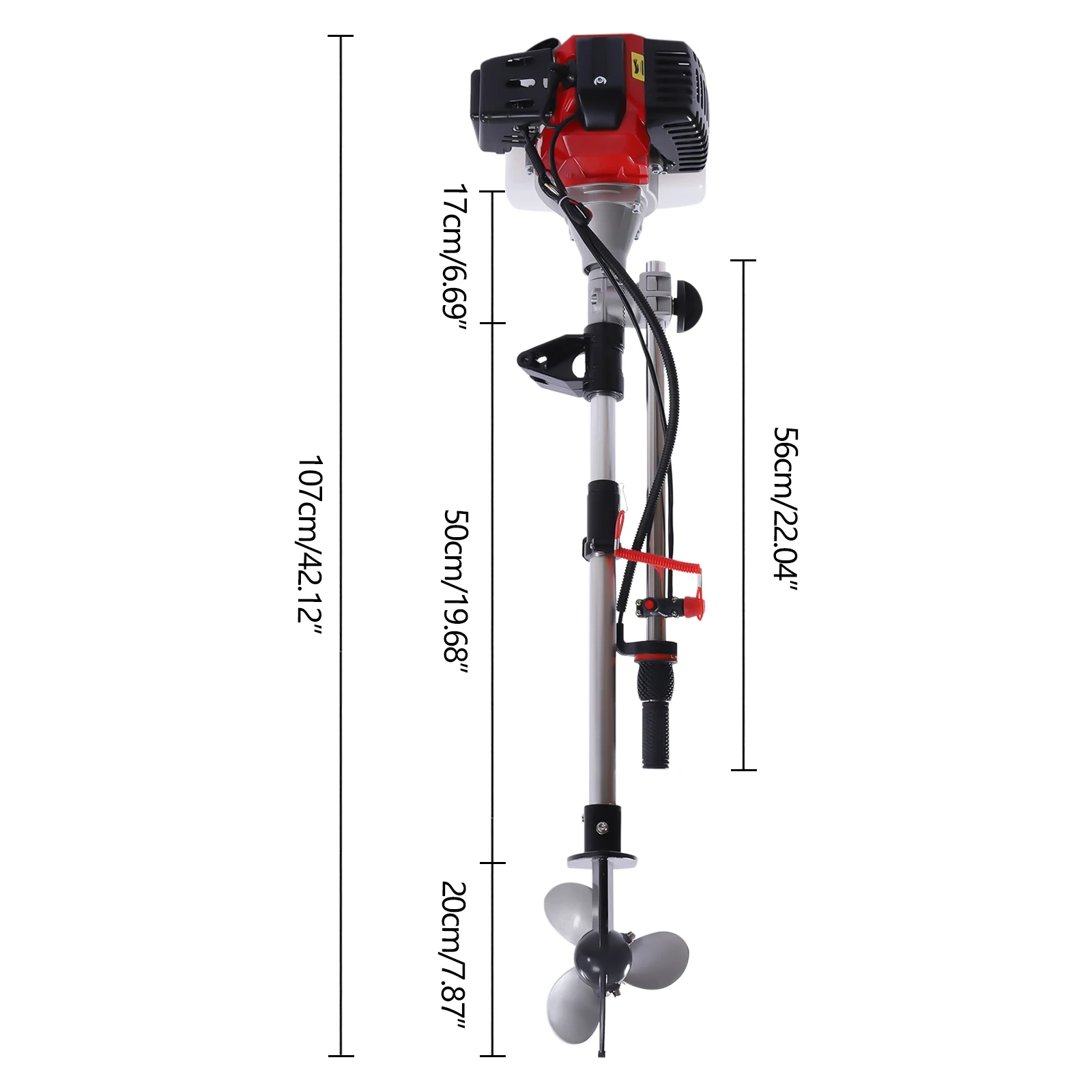 Powerful, portable, and built for the water, the 2.3 HP 2 Stroke Gas-Powered Outboard Trolling Motor 52CC is designed to upgrade your small-boat adventures. With a robust 1.7 kW/2.3 HP engine and a wide operating speed range, this long-shaft outboard delivers reliable thrust for fishing, cruising, and trolling.