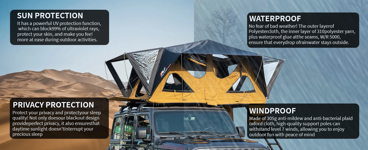 - Quick Automatic Opening means you can deploy your rooftop tent in moments and focus on the journey, not the setup.