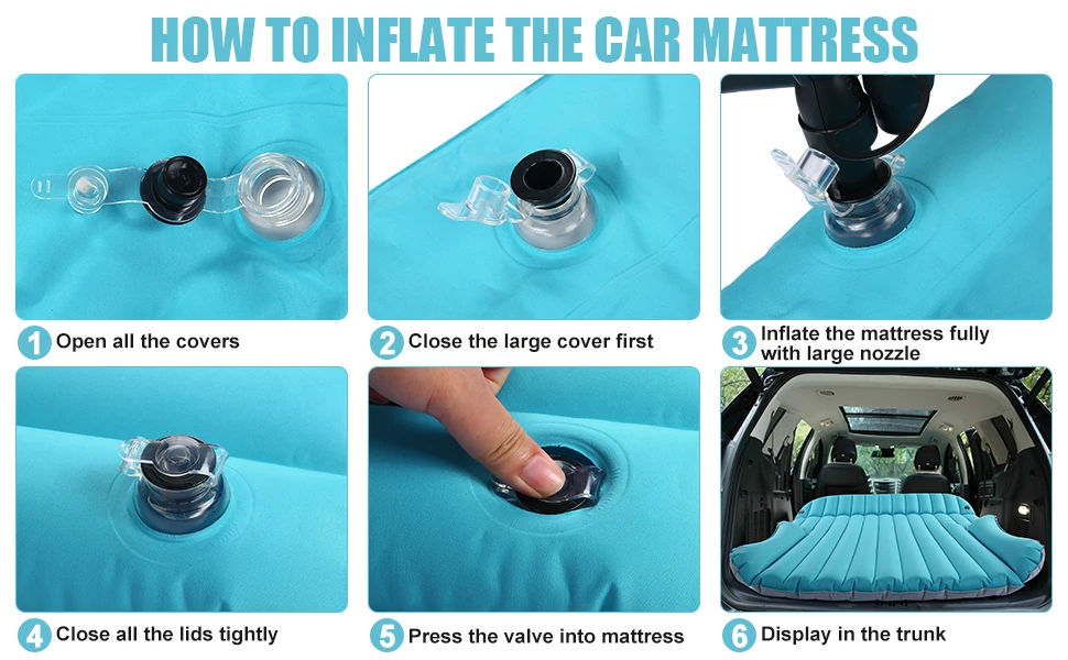 【What You Get】- The package includes 1 back seat air mattress (inflated: 192x128x12cm); 1 air pump (for car, with 3 different gas nozzles); 1 carry bag; 1 set of repair patch; and 1 set of instructions. If you are unhappy with any aspect of our air mattress, please contact us and we'll make it right.