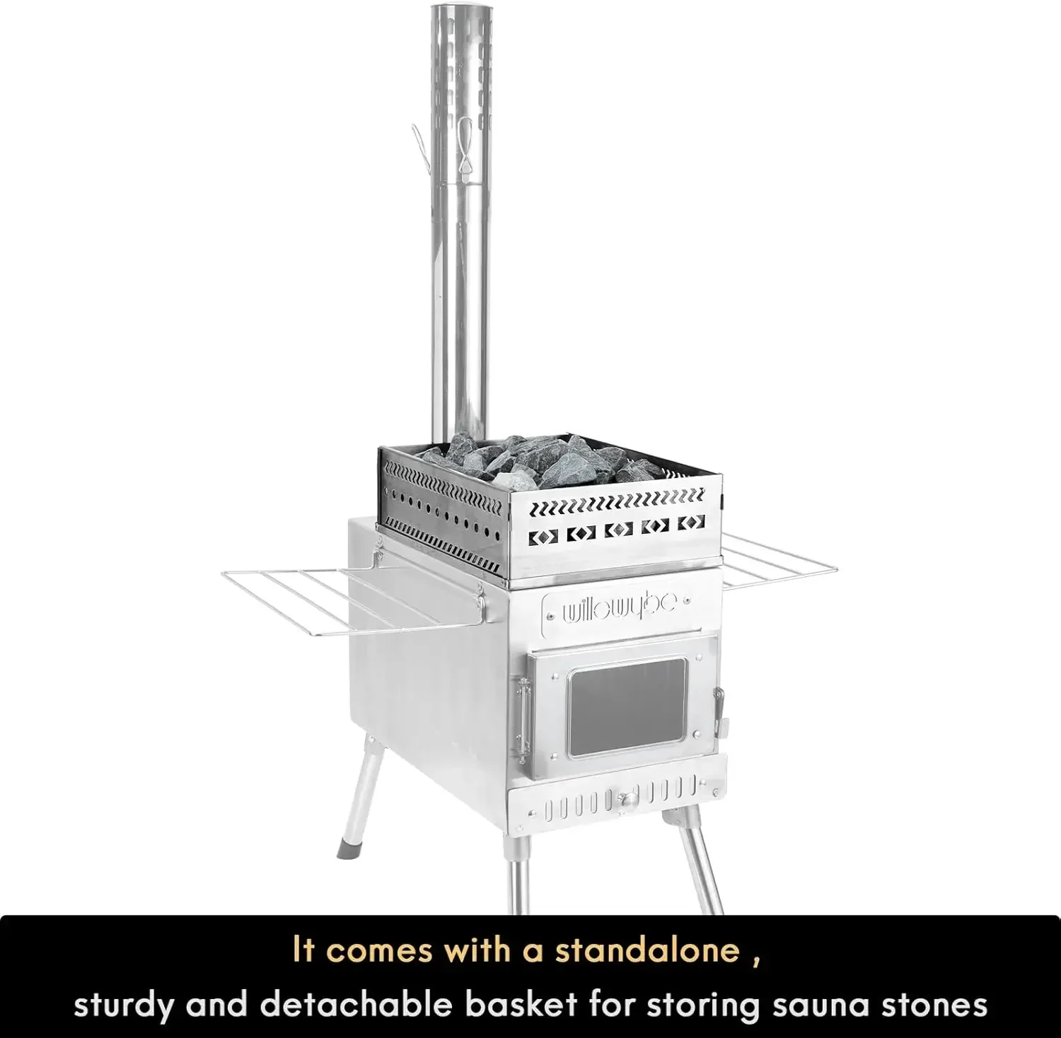 Outdoor Sauna Hot Tent Stove, Rocket Stove Heater, Portable Camping Wood Stove for Dry Sauna, Cooking for Husband and Friends