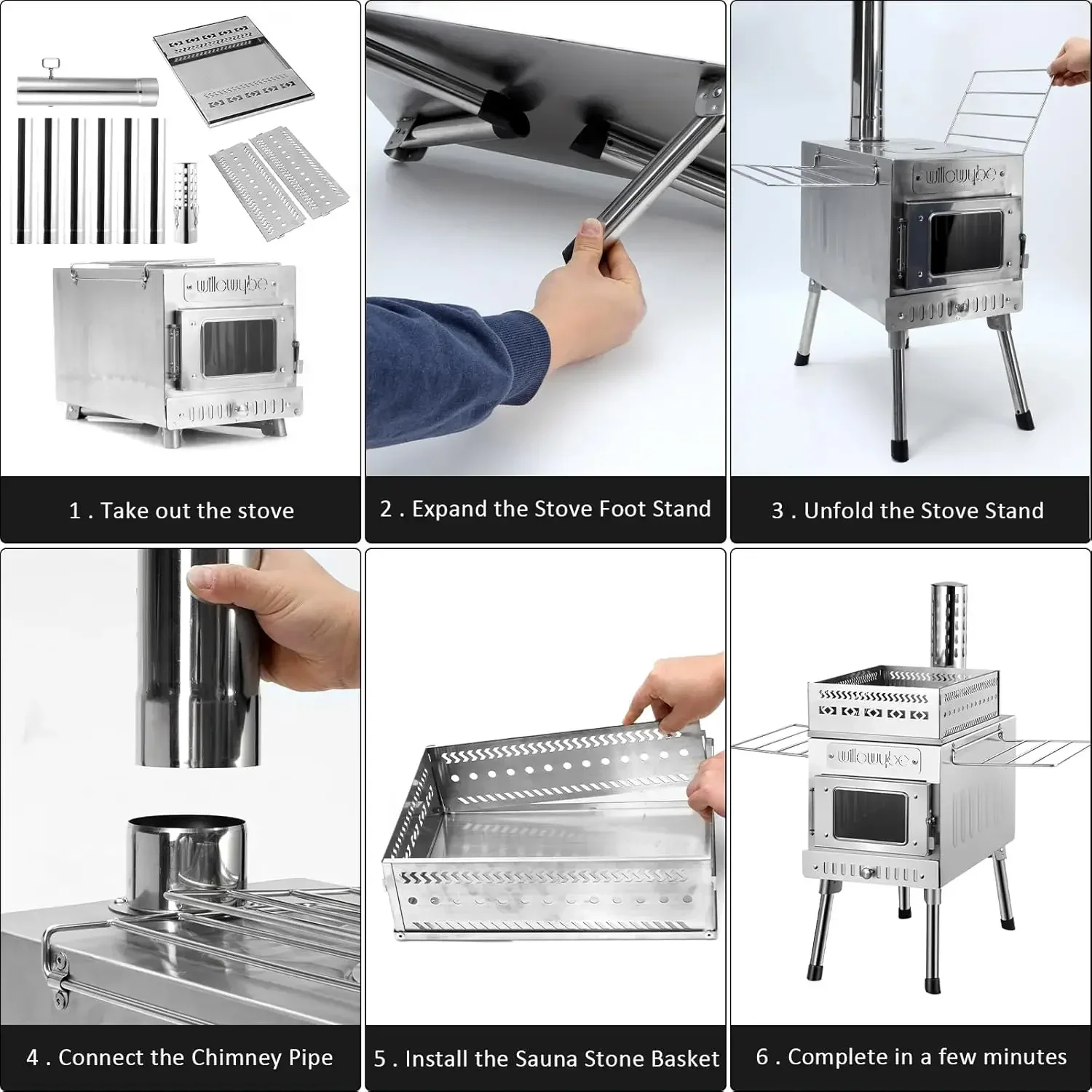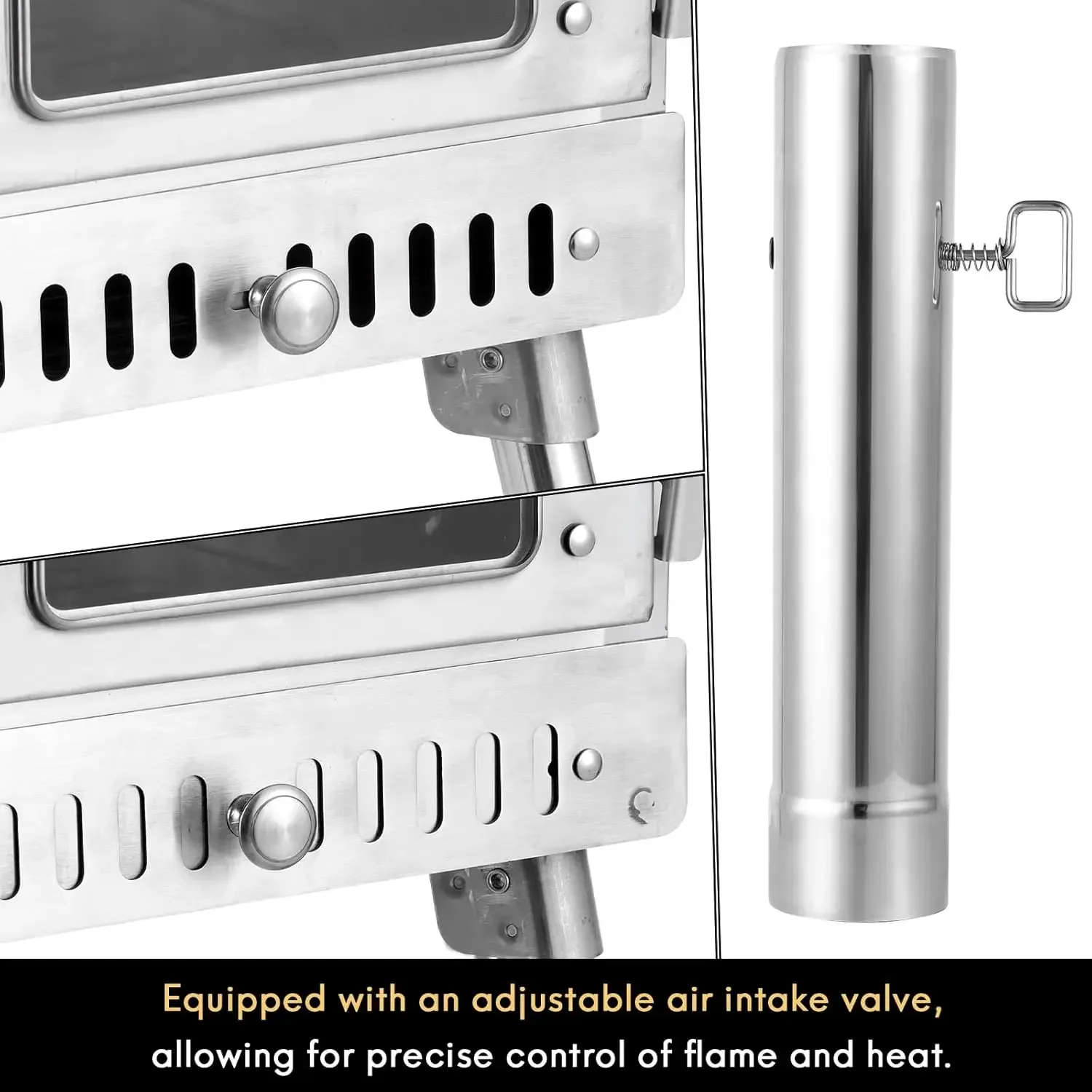 Robust and Durable – Possessing exceptional high-temperature resistance, it is rust-free, paint doesn't peel, and it is odorless. It can be used directly inside the tent, featuring a front door with German high-temperature explosion-proof glass.