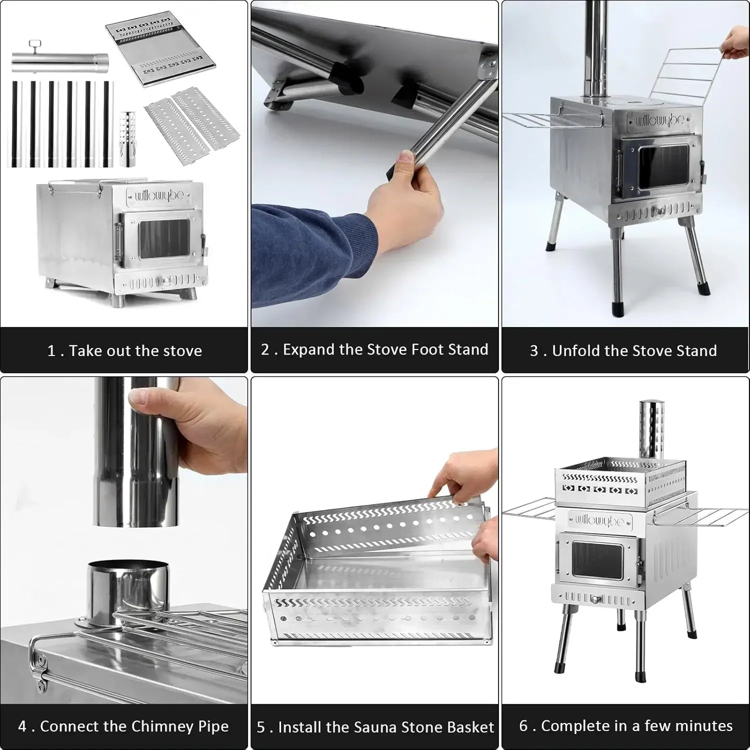 Outdoor Sauna Hot Tent Stove, Rocket Stove Heater, Portable