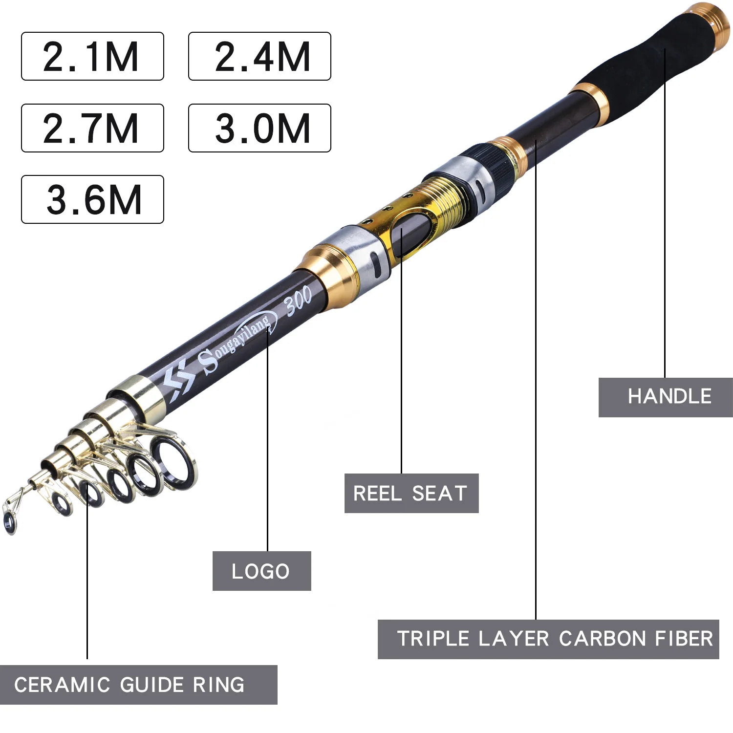 Sougayilang Top quality Telescopic Spinning Fishing Rod 2.4M Portable Fishing Pole Tackle Sea Rod Fishing Tackle PeSougayilang Telescopic Fishing Rod 2.1-3.6m Ul