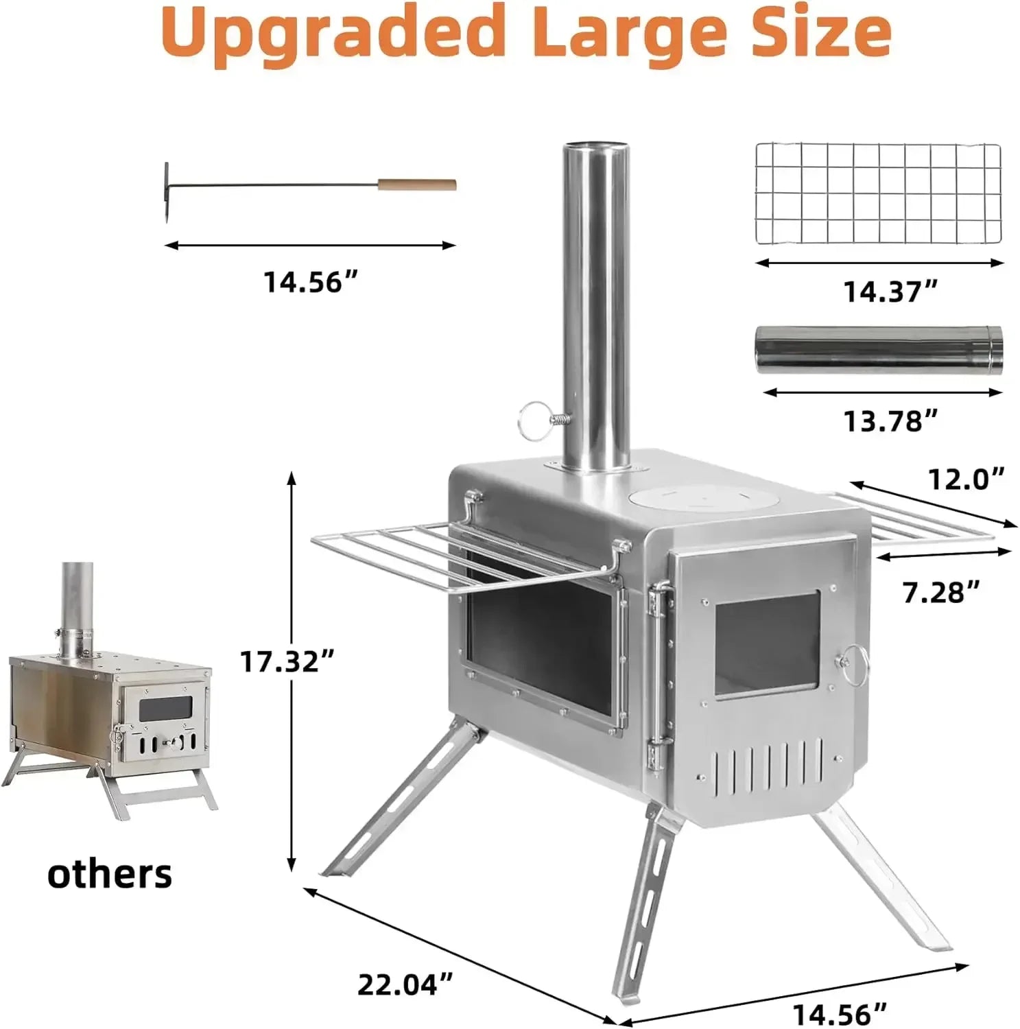 Stainless Steel Wood , 22“ Oversize Heating Burner Stove for Tent, Includes Pipe