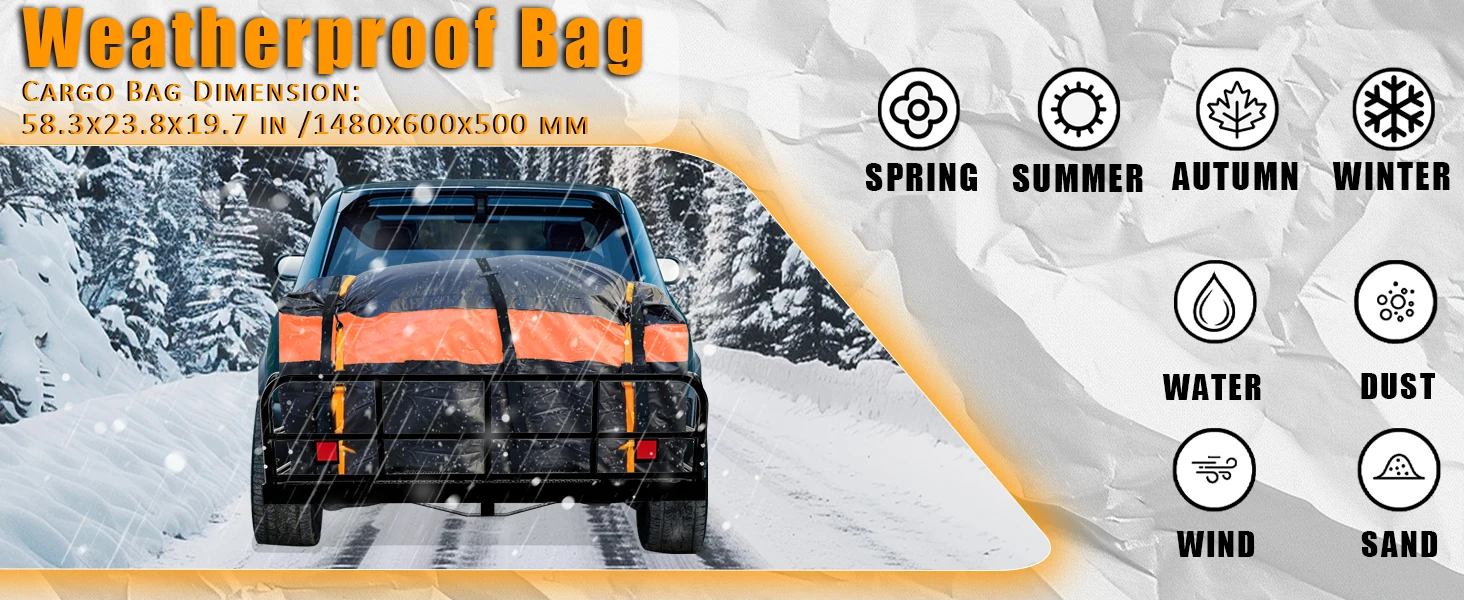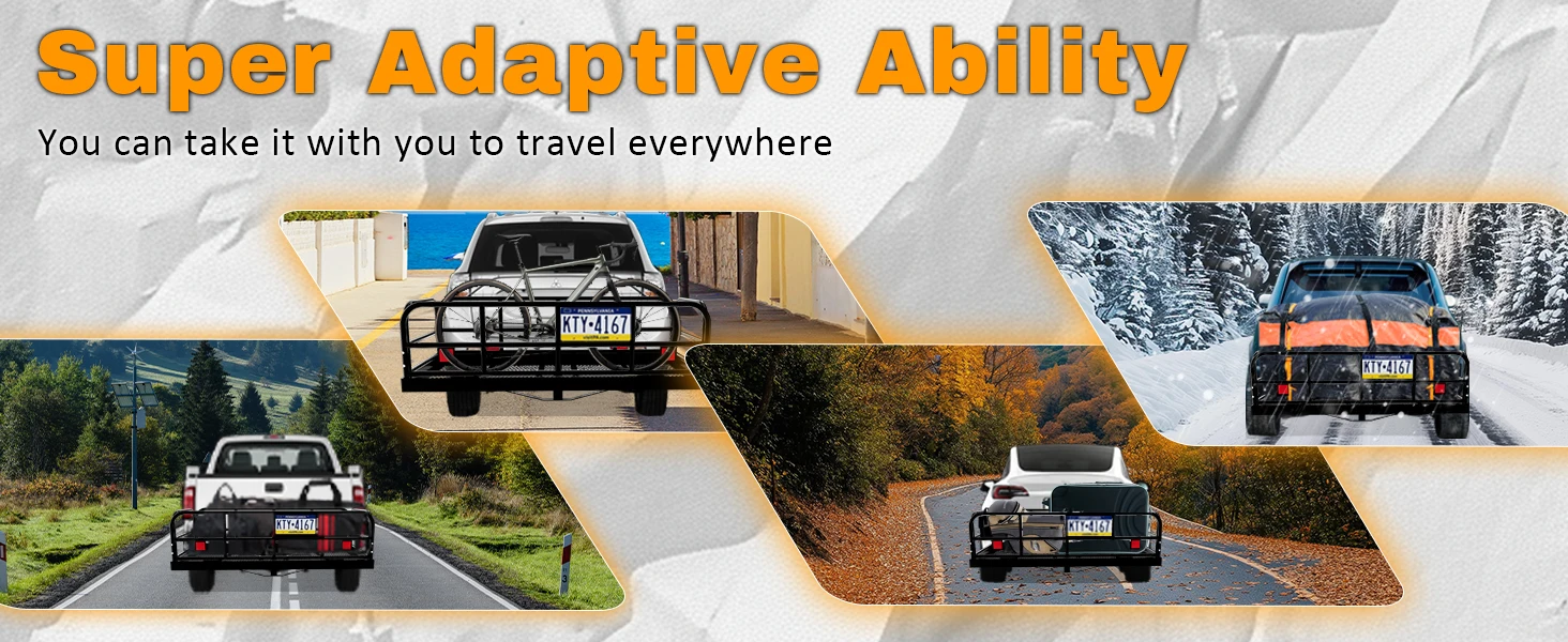 【Enhanced Security】-2 reflective strips on the rear side of vehicle cargo baskets increase visibility for car hitch cargo carrierand your vehicle in different situations. Especially on rainy nights or foggy days, reflective strips of suv travel basket provides another safety insurance
